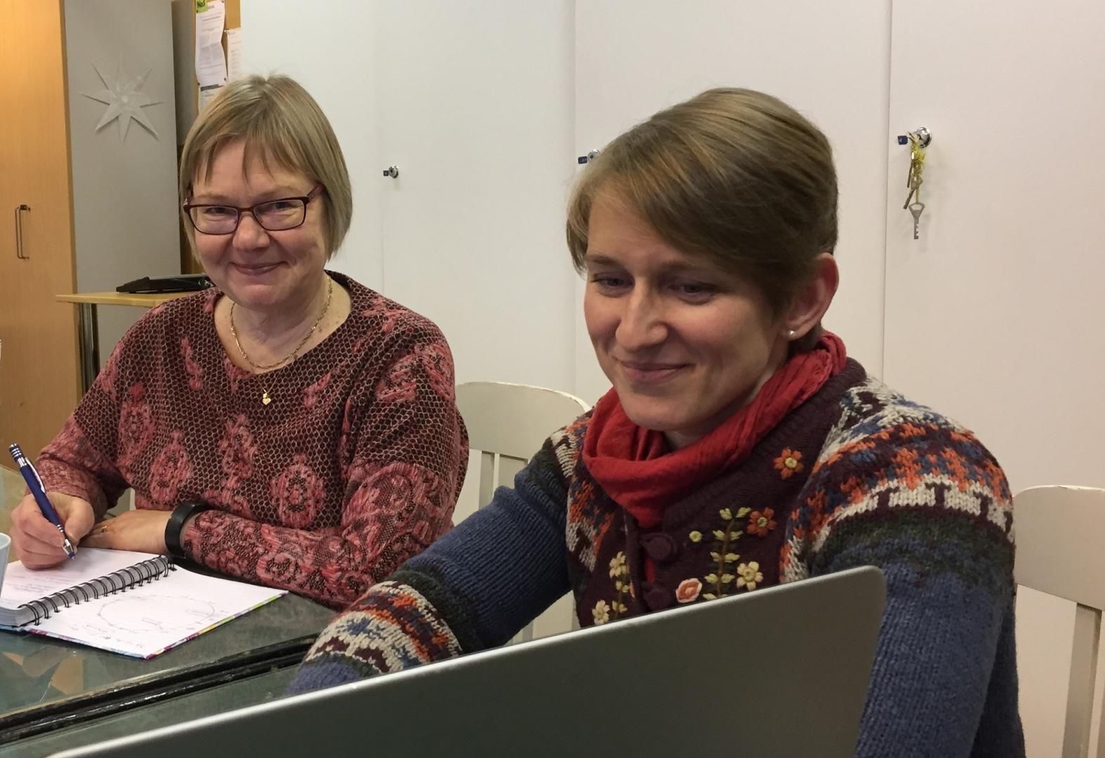 På bilden: Kanslisekreterare/informatör Rita Niemi och verksamhetsledare Katja Salojärvi.