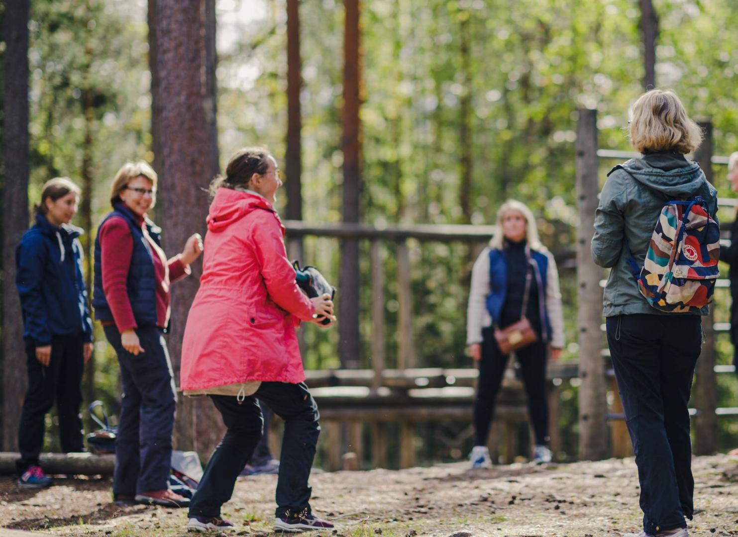 Efter lunchen deltog en grupp i passet Upptäcktsfärd i naturen och i dina sinnen tillsammans med Jonna Sahala från Finlands svenska scouter. De som ville träna kunde delta i passet Functional training och många hade för eftermiddagen valt passet Avslappning. Det var för övrigt under det passet vissa slappande av och somnade, medan andra kanske också tog med sig olika metoder för avslappning att använda också i vardagen.