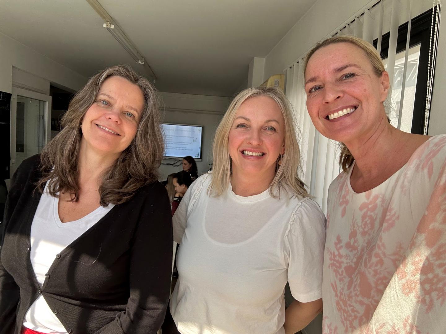 På bilden: Finländarna på Cypern. Från vänster: Petra Högnäs från Folkhälsan, Sonja Nyback från Nykterhetsförbundet och Daniela Andersson, Föreningen för Skogskultur.