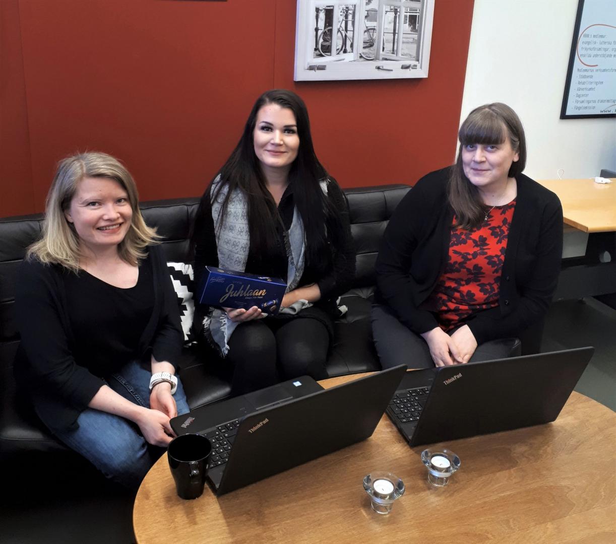 Nora Strömman, Gita Lindholm och Maija Nilsson på Svenska hörselförbundet.